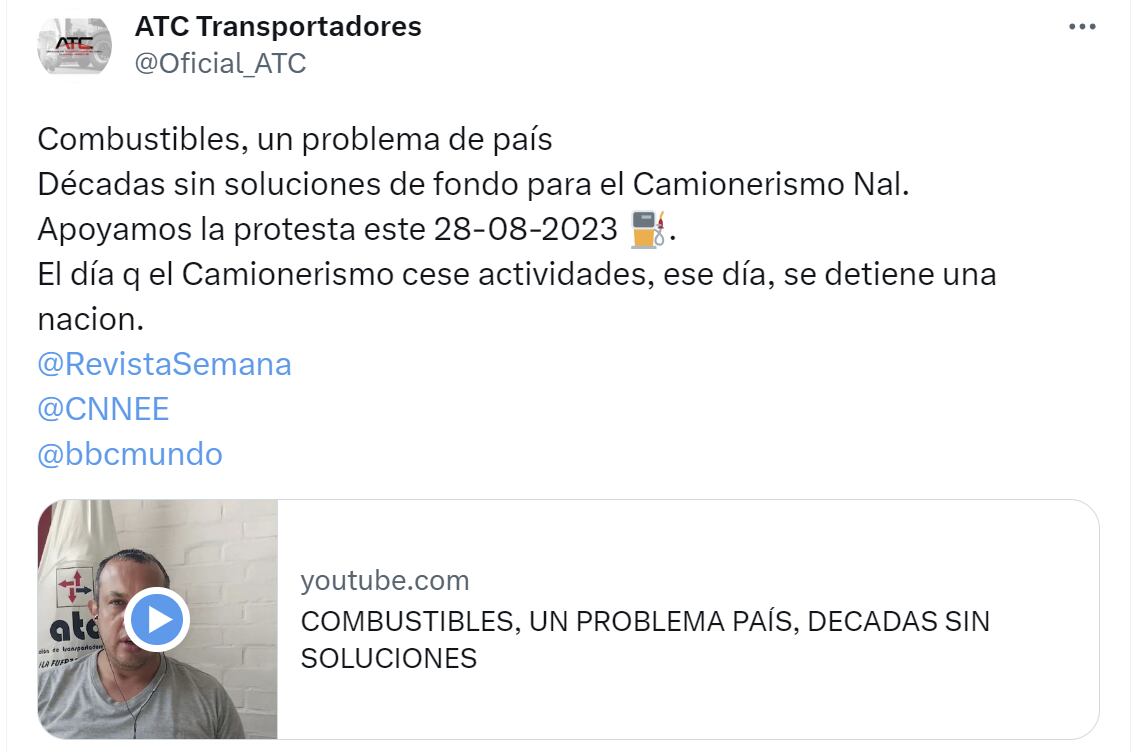 La Asociación de Transportadores de Carga sostiene que el gremio de camioneros no se ha visto afectado únicamente por el alza de los combustibles, sino por otras situaciones como la infraestructura, los fletes y la seguridad. Desde ese sector piden que se instale una mesa técnica que convoque a todos los sectores de transportadores para que puedan buscar soluciones a las diferentes problemáticas que afrontan en la movilidad nacional.